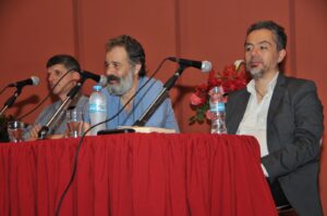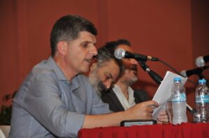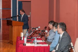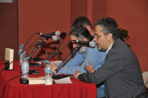 Τα παραπάνω στοιχεία ανέπτυξαν στο πρώτο μέρος της εκδήλωσης, ο μουσικός, επίκουρος καθηγητής στο Τμήμα Μουσικής Επιστήμης και Τέχνης του Πανεπιστημίου Μακεδονίας Μάνος Αχαλινωτόπουλος, ο φιλόλογος, Παναγιώτης Μανιώτης και ο ίδιος ο συγγραφέας.