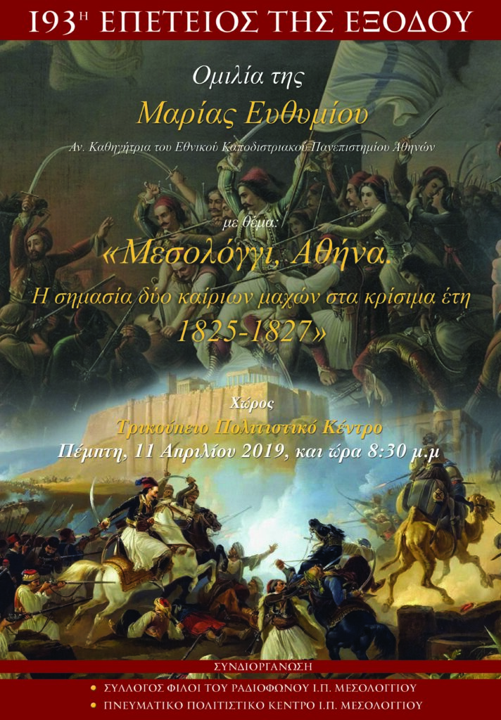 Μεσολόγγι-Αθήνα, η σημασία δύο καίριων μαχών στα κρίσιμα έτη 1825-1827 9 Απριλίου, 2019 admin Ανακοινώσεις, Εκδηλώσεις 0 σχόλια Προηγούμενο ΤΑΚΤΙΚΗ ΓΕΝΙΚΗ ΣΥΝΕΛΕΥΣΗ – ΤΡΟΠΟΠΟΙΗΣΗ ΚΑΤΑΣΤΑΤΙΚΟΥ Επόμενο Κοπή πίττας του Ραδιοφωνικού Σταθμού Μεσολογγίου